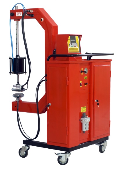 Перемещение нагревательных элементов осуществляется при помощи штока, положение которого фиксируется стопорным штырём, а окончательное перемещение – посредством пневмоцилиндра, создающего максимальное давление на ремонтируемую зону более чем 900 кГ. Оба элемента снабжены электрическими и пневматическим разъемами, что облегчает техническое обслуживание вулканизатора и быстрый монтаж нагревательных элементов при установке на вулканизатор покрышек большого диаметра. Система предварительной подводки нагревательных элементов обеспечивают полную безопасность работающего на вулканизаторе оператора.
