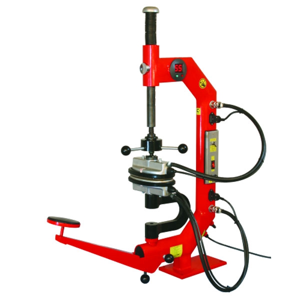 Два нагревательных элемента овальной формы с изменяемой геометрией поверхности обеспечивают более точную передачу усилия вне зависимости от профиля ремонтируемой зоны поверхности покрышки. Четкая фиксация ремонтируемой покрышки с требуемым давлением на рабочую зону достигается применением винтового зажима со встроенным ограничителем усилия. Оба элемента снабжены электрическими и пневматическим разъемами, что облегчает техническое обслуживание вулканизатора и быструю смену нагревательного элемента при необходимости. Для удобства при эксплуатации вулканизатора «Этна» используется электронный таймер, а также кнопка быстрого подъема штока. В зависимости от вида выполняемого ремонта возможно использование скобы, которая незаменима при ремонте боковых повреждений покрышек. Есть еще одно качество вулканизатора «Этна», которое нельзя недооценить, - лапа поддержки ремонтируемой покрышки.
