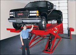 В подъемниках ножничной конструкции обеспечивается свободный доступ к домкратам спереди и сзади.