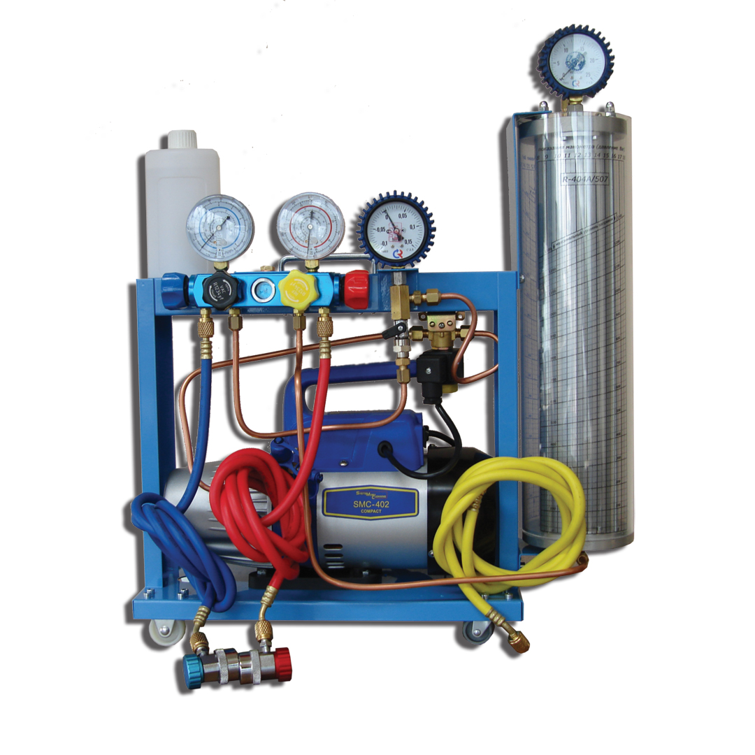 Все заправочные станции данного модельного ряда оснащены 4-х вентильным манометрическим коллектором,станции сконструированы на базе высокопроизводительных вакуумных помп, оборудованных защитным соленоидным клапаном, защищающим систему от попадания в нее масла и воздуха.