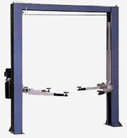 Асимметричный электрогидравлический 2-х стоечный подъемник. Стойки соединяются верхней балкой (свободный пол).