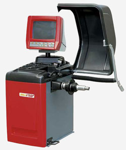 Станок для балансировки колес легковых автомобилей, микроавтобусов, легких грузовиков и мотоциклов с цветным монитором и автоматическим вводом размеров диска.