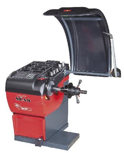 Модель последнего поколения! Современный, новый, эргономичный дизайн. Автоматические внешний и внутренние рычаги (автоматический ввод диаметра, дистанции и ширины диска). Имеет возможность работы до 3 операторов без повторного ввода параметров. Автоматически измеряет диаметр и расстояние до предполагаемого места крепления грузика и автоматически фиксирует измерительное устройство при достижении им требуемой позиции (функция ALUDATA). Оснащен режимами самокалибровки и самоконтроля, функциями распределения груза за спицами диска и автоматического запуска при опускании защитного кожуха. Педаль ножного тормоза позволяет надежно зафиксировать колесо в точке крепления груза.