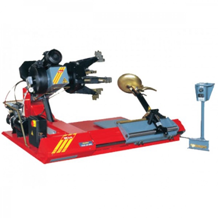 Универсальный станок для монтажа шин грузовых автомобилей, сельскохозяйственной, дорожной и промышленной техники с диаметром диска от 14″ до 52″, шириной до 910 мм с глубоким ободом, бескамерных или с кольцом. Имеет зажимное устройство типа тюльпан.