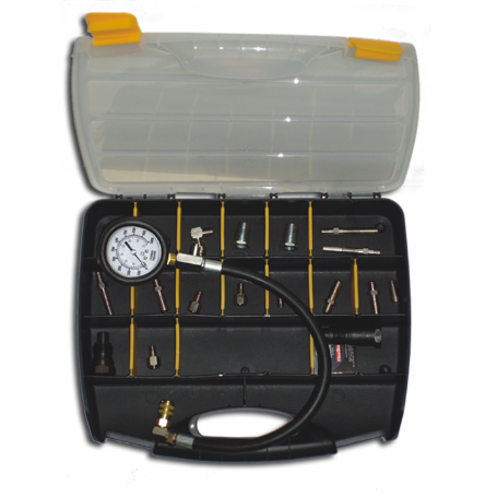 Комплектуется 12-ю адаптерами с различными резьбами, механическим манометром, диаметром 63 мм. Все адаптеры имеют клапана для уменьшения погрешности производимых измерений. Гарантия 2 года.