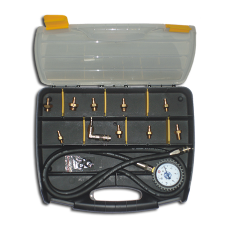 Позволяет произвести диагностику масляного насоса, датчиков давления и пр. Укомплектован высокоточным манометром диаметром 63 мм, с пределом измерения от 0 до 10 бар.В комплект входят 10 адаптеров с различными резьбами.