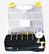 Укомплектован высокоточным манометром, диаметром 63 мм, с пределом измерений 0-150 бар. В комплект входит 15 адаптеров, которые предназначены для наиболее часто встречающихся моделей автомобилей.